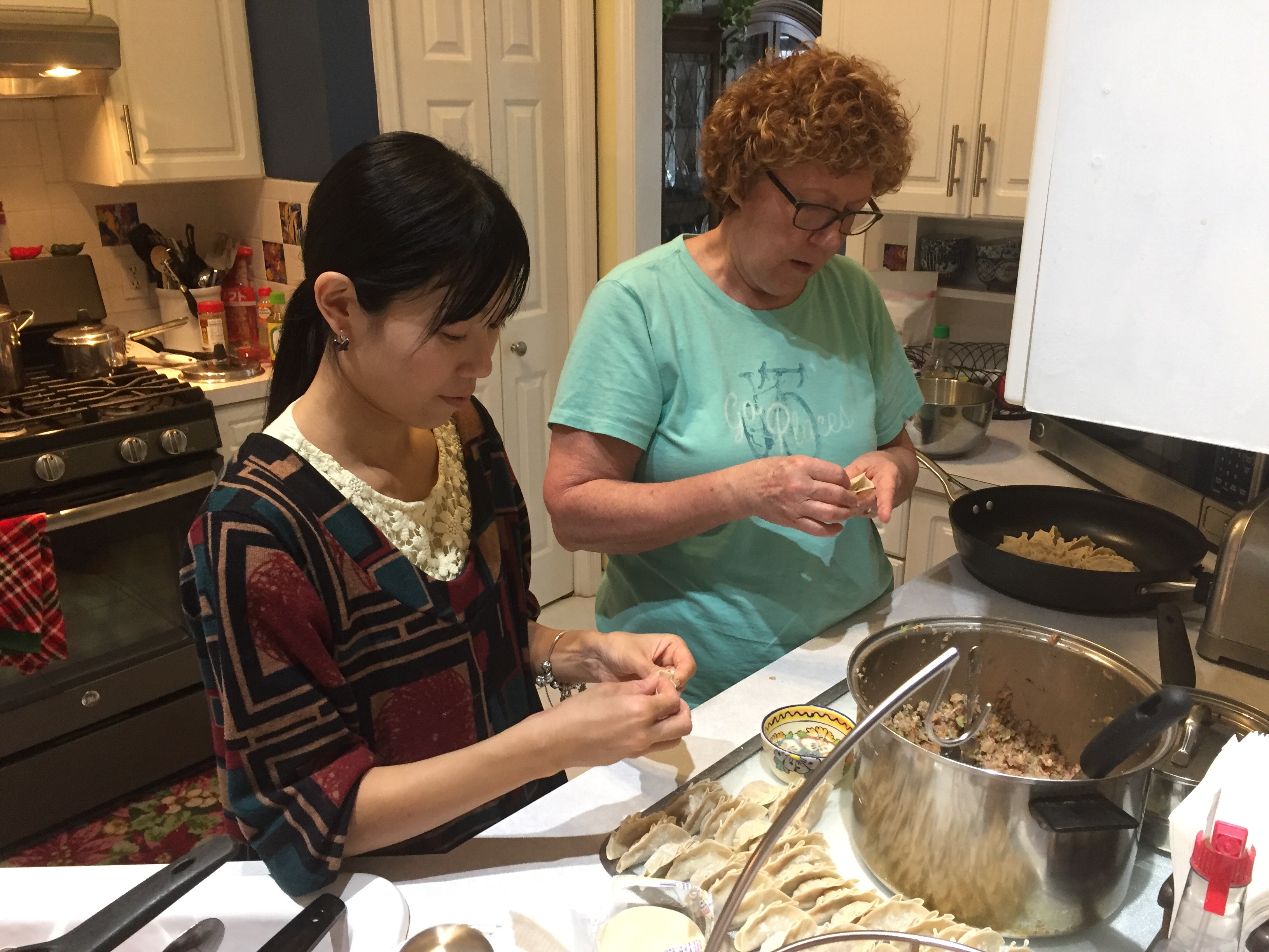 Leo and I explored the outside world as wife and mother-and-law prepped a meal. At some point I popped my head in and the two of them were working on gyoza.