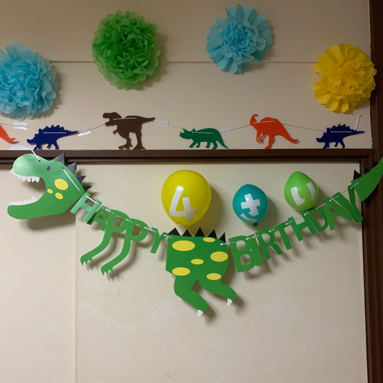 Before picking him up from daycare we tried to spruce the apartment up a little bit with some decorations he’d like. The Mrs picked out all the supplies, but setting them up was a team effort.