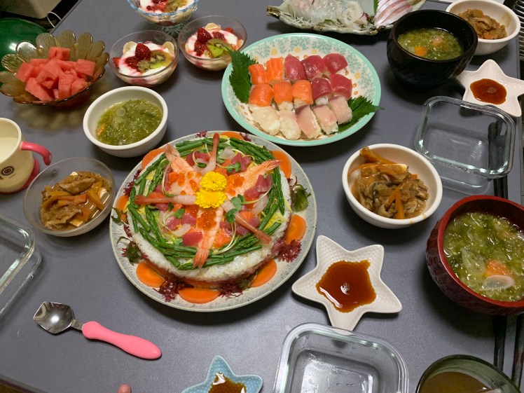 And dinner was amazing. The three of us did our best, but there is a bit left for tomorrow. It was quite a feast, and all requests from the birthday boy.